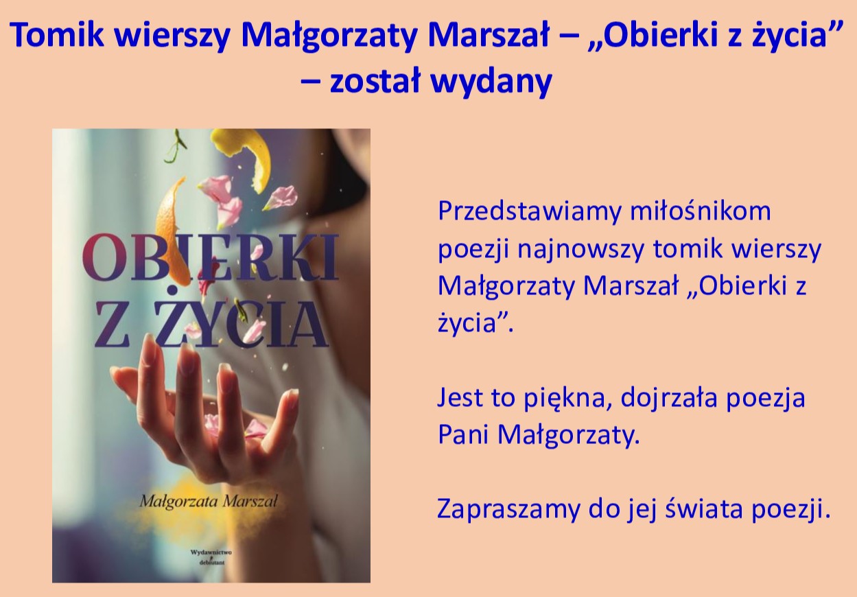 Tomik wierszy Małgorzaty Marszał – „Obierki z życia” – został wydany.